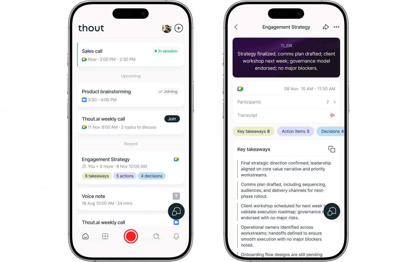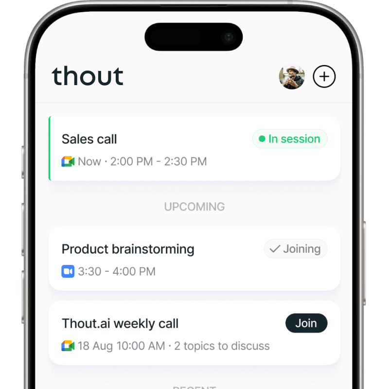 We didn’t build thout to automate meetings. There are other apps for that. We built it to augment our minds. So you can work smarter and follow through faster.